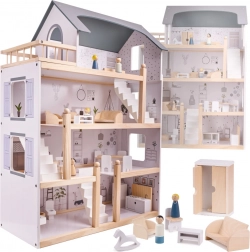 Dom ma aż cztery piętra i oferuje mnóstwo przestrzeni do zabawy! Drewniany taras na najwyższym piętrze dodaje całemu domowi uroku. Wśród wielu różnych pomieszczeń znajdują się łazienka, pracownia, salon, jadalnia z aneksem kuchennym i sypialnia. Każde z nich jest w pełni wyposażone i gotowe na przyjęcie nowej rodziny lalek. Dzięki dużym rozmiarom mieszczą się wewnątrz nie tylko najmniejsze lalki, więc nie trzeba się obawiać, że ulubiony przyjaciel twojego dziecka nie weźmie udziału w zabawie!