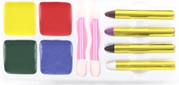 Ten zestaw do malowania twarzy i ciała oferuje wszystko, czego potrzebujesz do szybkiej i efektownej przemiany. Dzięki kombinacji 4 kremowych kolorów i 4 kredek stworzysz precyzyjne linie, delikatne cienie i wyraziste motywy. Kolory łatwo się nakładają za pomocą dołączonych aplikatorów, a na większe powierzchnie można użyć gąbeczki.