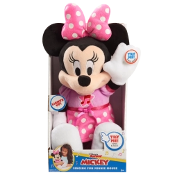 Ten uroczy pluszak Minnie Mouse ma 30 cm wysokości i nosi piękny różowy strój w białe grochy. Dzięki miękkim materiałom to idealna zabawka dla dzieci od trzeciego roku życia.