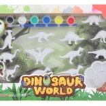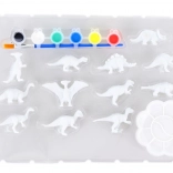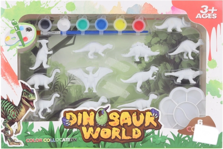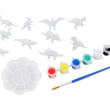Zestaw zawiera dinozaury 3D, 6 farb, pędzelek i paletę – dzieci mogą zacząć tworzyć od razu, bez dokupywania akcesoriów.