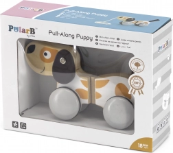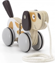 Drewniany piesek na sznurku z kolekcji VIGA POLARB towarzyszy dzieciom podczas pierwszych spacerów i zamienia każdy krok w zabawę. Dzięki gumowym nakładkom na kółkach jazda jest cicha i płynna, a gdy dziecko pociągnie, ogonek wesoło merda.