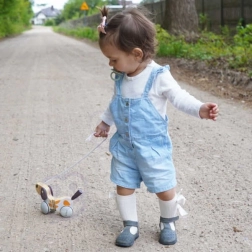 Piesek na sznurku zachęca dzieci do chodzenia, wzmacnia koordynację i uczy utrzymywania równowagi. Dzięki wygodnemu sznurkowi prowadzenie jest naturalne i przyjemne.