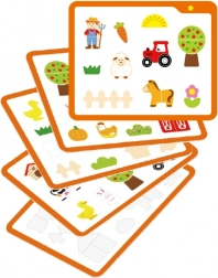 Elementy mają zaokrąglone krawędzie i wysoką jakość wykończenia. W zestawie znajdują się także karty z wzorami o tematyce farmy dla łatwego startu.