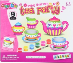 Ceramiczny czajniczek, 2 filiżanki, dzbanuszek, cukiernica, 6 farb, pędzelek, instrukcja