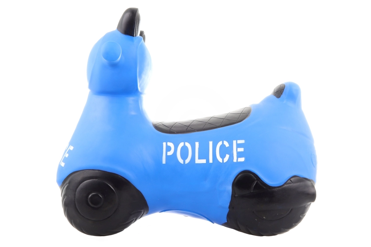 Zabawny gumowy skoczek w kształcie motoru z policyjnym motywem dla dzieci od 1 roku. Wspiera rozwój równowagi, motorykę dużą i koordynację, jest stabilny, wytrzymały i łatwy w czyszczeniu. W zestawie znajduje się pompka do szybkiego napompowania.