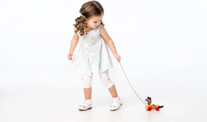 Drewniana zabawka do ciągnięcia, zaprojektowana w kształcie wesołego kociaka, jest idealna do zabawy i rozwoju umiejętności motorycznych dzieci. Zabawka ma ruchomy tułów i kółka, co umożliwia płynne i wesołe ruchy podczas ciągnięcia za sznureczek. Kolorowy design przyciąga uwagę dzieci i zachęca je do aktywnej zabawy.