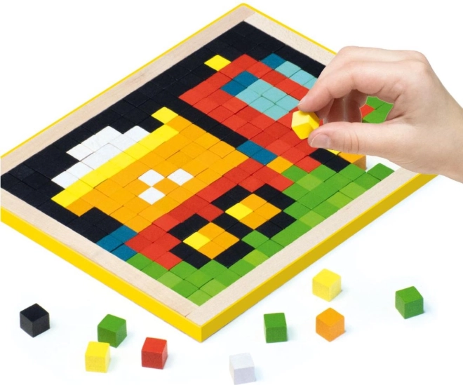 CUBIKA to nowa marka drewnianych zabawek wykonanych wyłącznie z ekologicznie uprawianego drewna, z bardzo precyzyjną obróbką i atrakcyjnym designem. Pixel IV auta to drewniana mozaika z 400 klockami o wymiarach 1 x 1 cm, 7 tematycznymi szablonami oraz drewnianą ramką. Znajomość kolorów i odrobina cierpliwości wystarczą, aby z poszczególnych kolorowych klocków ułożyć piękne obrazki. Asortyment zabawek marki CUBIKA pomaga dzieciom rozwijać przede wszystkim umiejętności sensomotoryczne, myślenie logiczne, kreatywność, wyobraźnię oraz różne kompetencje poznawcze. Zabawki są wykonane z najwyższej jakości klonu i buku, a do barwienia używane są również wysokiej jakości farby na bazie wody, które są całkowicie bezpieczne dla dzieci i bezzapachowe. Wszystkie produkty tej marki posiadają niemiecki certyfikat TÜV i są wytwarzane zgodnie z europejską normą bezpieczeństwa zabawek EN 71. Nieodpowiednie dla dzieci poniżej 5 lat. Wyprodukowano w Europie.