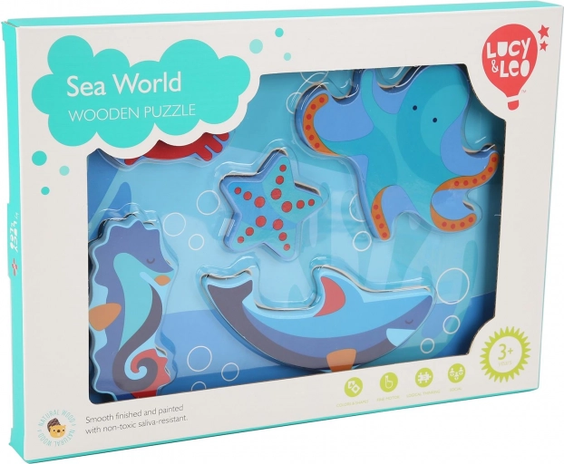 Drewniane puzzle dla dzieci z motywem morskich stworzeń zostały zaprojektowane do nauki przez zabawę. Sześć kolorowych elementów – na przykład ośmiornica, rozgwiazda czy konik morski – idealnie pasuje do frezowanych kształtów na solidnej podstawie z oceanicznym motywem. Elementy są wystarczająco duże, by dobrze leżały w dłoni, a dzięki grubości mogą samodzielnie stać.