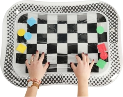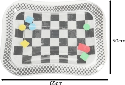 Odkryj kontrastową wodną matę, która nie tylko przyciągnie uwagę Twojego dziecka, ale również wspiera jego rozwój sensoryczny i motoryczny. Ta mata z czarno-białym wzorem szachownicy zawiera pływające kolorowe kształty geometryczne, które poruszają się pod wpływem dotyku dziecka.