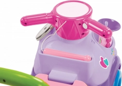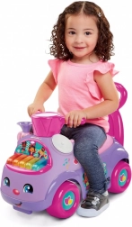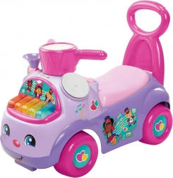Na przodzie jeździka znajdują się kolorowe klawisze z dwoma trybami: odtwarzanie 5 wesołych, marszowych melodii oraz swobodna gra muzyczna, która wspiera kreatywność i poczucie rytmu. Nie brakuje schowka pod siedziskiem na drobiazgi i ulubione skarby.