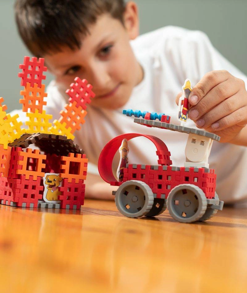Stwórz mały budynek z płomieniami i przećwicz akcję ratunkową z figurkami. Idealne do rozwoju zabaw tematycznych (role-play).
