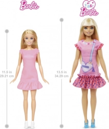 Wejdź do świata, w którym zaczyna się przyjaźń, a wyobraźnia nie zna granic. Lalka z linii Moja pierwsza BARBIE jest większa, lekka i przyjemnie elastyczna, dzięki czemu małe rączki mogą ją łatwo trzymać, ubierać i ustawiać w pozach. Różową sukienkę zdobią figlarne detale, takie jak falbanki i grafika torebki w kształcie serduszka; do kompletu są pasująca opaska i buciki. Długie blond włosy zachęcają do czesania i tworzenia fryzur, co naturalnie rozwija małą motorykę.