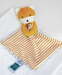 Urocza główka liska i miękka tkaninka dają dziecku poczucie bezpieczeństwa i pomagają w zasypianiu.