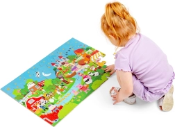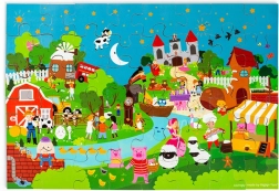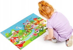 Te kolorowe puzzle podłogowe składające się z 48 elementów zapraszają dzieci do świata fantazji. Każda ilustracja inspiruje do tworzenia własnych bajek, co naturalnie rozwija umiejętności językowe oraz interakcje społeczne między dziećmi a rodzicami. Duże, solidne elementy są łatwe do chwytania i świetnie do siebie pasują.