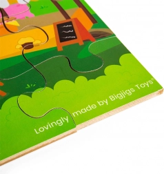 Wykonanie z wysokiej jakości drewna z odpowiedzialnych źródeł oraz powierzchnia z intensywnymi kolorami zapewniają długą żywotność i bezpieczną zabawę. Puzzle są idealne dla dzieci od 2 lat – do pierwszego układania na podłodze, rozwijania koncentracji i cierpliwości.