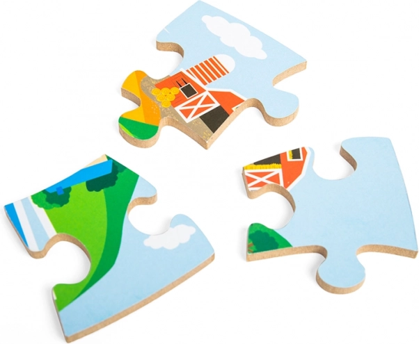 Okrągłe puzzle w większym rozmiarze są idealne do wspólnego układania i przejrzystego poznawania całego obrazka.