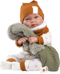 W zestawie znajduje się dekoracyjny smoczek oraz 3× bateria guzikowa LR44 z instrukcją wymiany. Lalka jest ręcznie wykonana w Hiszpanii i zapakowana w eleganckie pudełko prezentowe – idealna na prezent. Ubranka można rozszerzać o oryginalne stroje Llorens z serii New Born 43–45 cm.