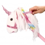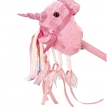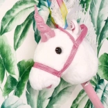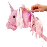 Jednorożec z dumą prezentuje piękną różową głowę i tęczową grzywę, która dodaje magii każdej zabawie.
