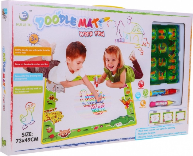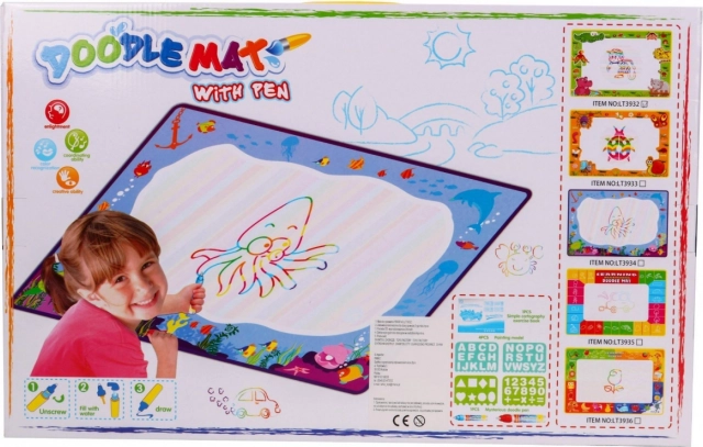 Vodná kresliaca podložka podporuje fantáziu detí a ich schopnosť učiť sa tvarom a farbám prostredníctvom hry.