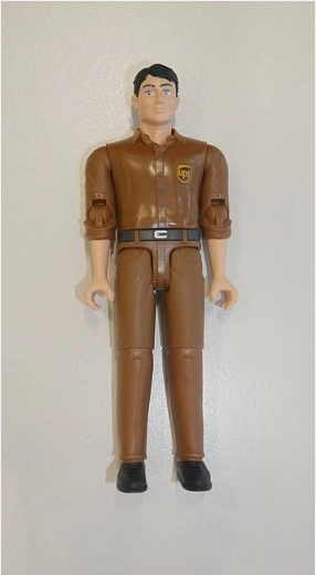 Pohyblivá figúrka vodiča UPS vhodná ako doplnok k modelom Bruder. Muž v typickej rovnošate hnedej farby. Vyrobené v Nemecku, z kvalitných materiálov. Hlavné vlastnosti: pohyblivá figúrka, vyrobené v Nemecku