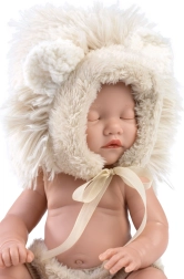 Táto spiaca realistická bábika je ideálna pre deti, ktoré chcú zažiť pocit starostlivosti o bábätko. Vďaka celo-vinylovému telu možno bábiku kúpať a jej dizajn zachytáva každý detail detského telíčka, vrátane roztomilých faldíkov. Bábika má kĺbové ruky a nohy, čo umožňuje jej polohovať a môže sedieť. Súčasťou balenia je cumlík, ktorý slúži ako štýlový doplnok. Táto bábika bola ručne vyrobená v Španielsku a je balená v krásnej darčekovej krabici.