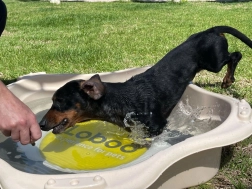 Premyslený dizajn s bezpečnými, zaoblenými hranami bráni okusovaniu, zatiaľ čo praktické drenážne drážky zabraňujú pretečeniu. Bazén je stohovateľný pre úsporu miesta a vďaka rukoväti ho pohodlne prenesiete kamkoľvek – na dvor, terasu aj na cesty so zvieratami.