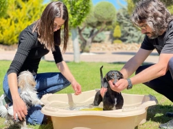 Tento priestranný bazén pre domáce zvieratá je ideálny na hygienické kúpanie aj letné ochladenie na záhrade. Ľahká a zároveň pevná konštrukcia z materiálu obohateného o mandľové škrupiny zaisťuje dlhšiu životnosť a menšiu ekologickú stopu. Dekor odolný voči vode a UV žiareniu je aplikovaný technológiou IML, takže sa nelúpe ani nevybledne.
