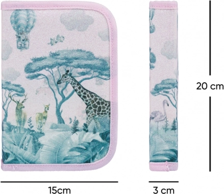 Objavte prehľadný a odolný peračník s jemným safari dizajnom v ružovo-modrom prevedení. Vďaka dvom chlopniam a premyslenému vnútornému usporiadaniu udrží všetky písacie potreby na svojom mieste, a pritom zostáva kompaktný a ľahký do každodennej školskej aktovky.
