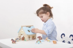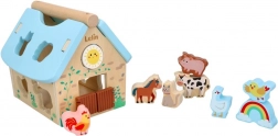 Tento drevený domček so zvieratkami je perfektnou hračkou pre rozvoj detí od 12 mesiacov. Je navrhnutý tak, aby deti inšpiroval k učeniu prostredníctvom hry. Domček obsahuje rôzne farebné tvary a zvieracie figúrky, ktoré možno vkladať do zodpovedajúcich otvorov, čo zlepšuje koordináciu oka a ruky.