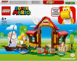 LEGO Super Mario Piknik v Marioho dome rozširujúci set (71422) ponúka deťom možnosť postaviť detailnú úroveň a poriadne si užiť zábavu pri zbieraní mincí. Pozdravte sa s žltým Yoshim, oddýchnite si v posteli, vychutnajte si sušienky z piknikového koša, polievajte zeleninu na záhrade, zahrajte si hokej alebo lovte ryby z loďky. Tento set vyžaduje štartovaciu sadu 71360, 71387 alebo 71403 pre interaktívnu hru.