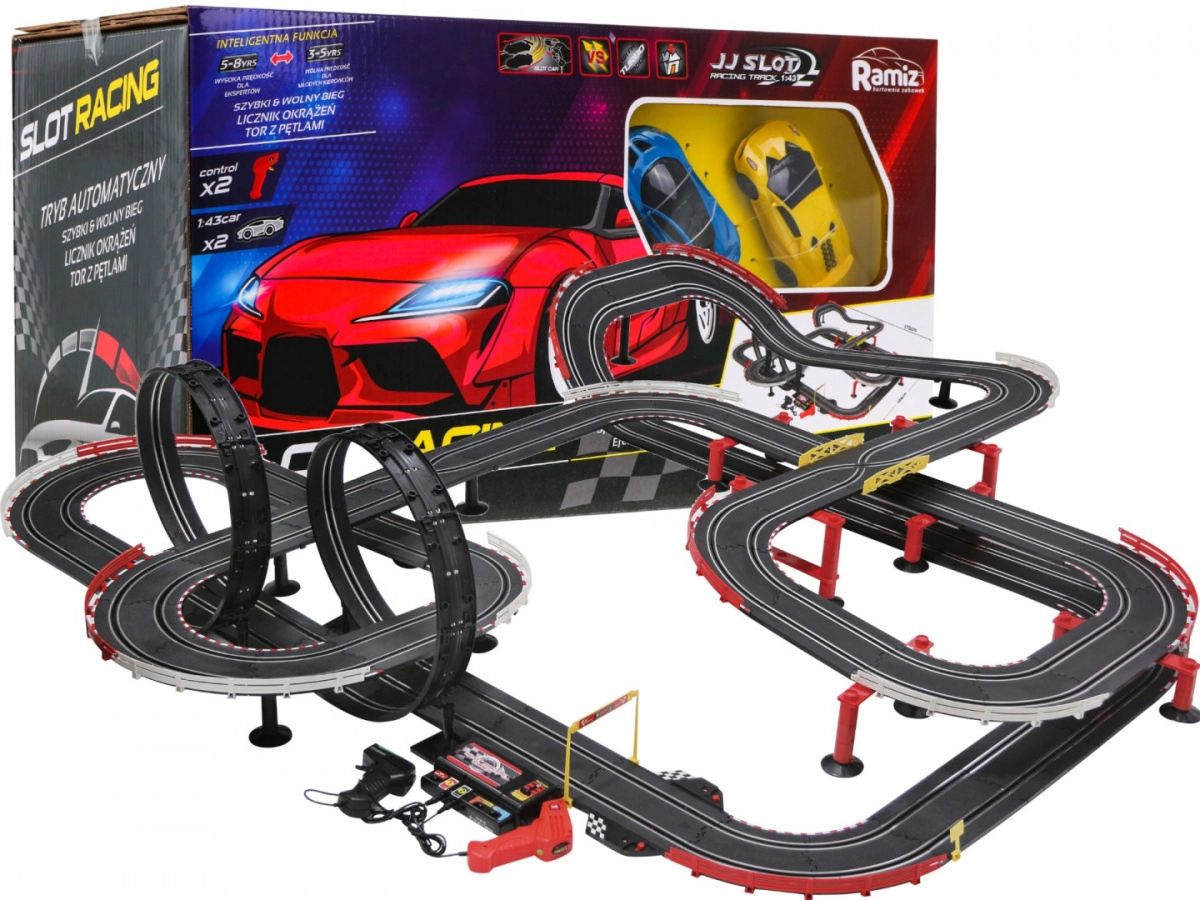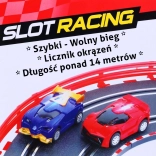 14-metrová závodná dráha pre deti 3-8 rokov, funkcia zmeny rýchlosti a 2 autá