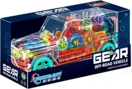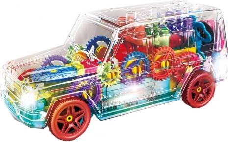 transparentné off-road auto s prevodmi a svetelnými efektmi