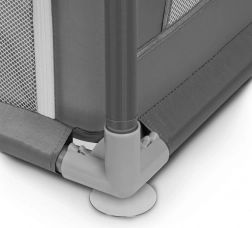 Pre rodičov je Willow praktickým pomocníkom: materiály sa ľahko čistia, montáž aj demontáž zvládnete bez náradia a po zložení zaberá minimum miesta. Dva bočné zipsy majú jazdec z vonkajšej strany, takže kontrolu nad vstupmi drží výhradne dospelý. Stabilitu zvyšujú oceľové trubky (Ø 2,5 cm), penové polstrovanie horných trubiek a 4 prísavky v rohoch pre spoľahlivú priľnavosť.