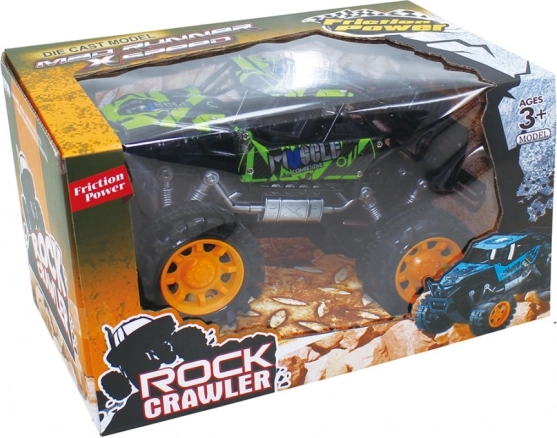Tento odolný model rock crawlera je stvorený na dobrodružstvo. Vďaka frikčnému pohonu stačí autíčko natiahnuť po podložke a pustiť – okamžite vyrazí vpred. Veľké terénne kolesá a zvýšený podvozok zvládnu prekážky, koberce aj vonkajšie povrchy.