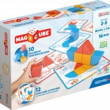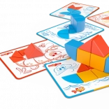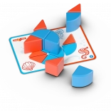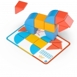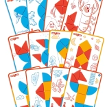 Súčasťou je 6 obojstranných kariet s 12 úlohami, ktoré vedú od jednoduchých skladačiek k pokročilejším tvarom a podnecujú logické myslenie.