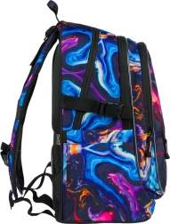 Moderný školský batoh s výrazným mramorovým vzorom je navrhnutý pre pohodlie aj dlhú výdrž. Ergonomicky tvarovaný chrbát, polstrovanie a plne nastaviteľné ramenné, hrudné aj bočné kompresné popruhy zaistia perfektné usadenie na chrbte a zdravé nosenie po celý deň.