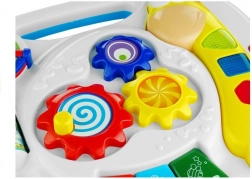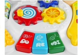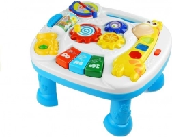 Tento interaktívny edukačný stolík je skvelý spôsob, ako deti zábavným spôsobom podnietiť k rozvoju. Obsahuje bohaté funkcie ako napríklad hrajúcu knižku, piano 'DO-RE-MI', a mnoho ďalších zvukových a pohybových prvkov, ktoré stimulujú sluch a zrak a rozvíjajú manuálne zručnosti.