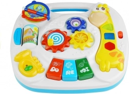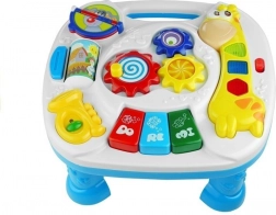Stolík poskytuje rôzne aktivity, ktoré zaujmú dieťa na dlhý čas. Obsahuje klavír, žirafu a kolieska pre rozvoj motorických zručností.