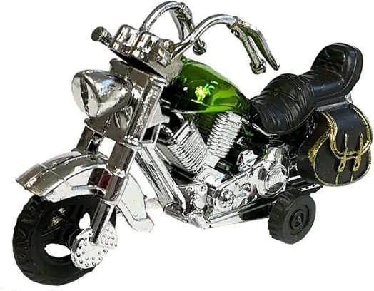 Táto súprava obsahuje štyri farebné modely motocyklov v farbách ružová, modrá, zlatá a zelená. Každý motocykel je vyrobený z odolného materiálu s funkčným naťahovacím mechanizmom: stačí motocykel potiahnuť dozadu a uvoľniť, čím sa rozbehne dopredu. Vďaka svojmu detailnému dizajnu tieto modely priťahujú pozornosť detských očí a zaručujú dlhotrvajúcu zábavu.
