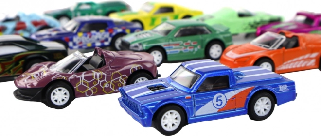 Sada autíčok v mierke 1:64 poteší každé dieťa, ktoré miluje preteky a zbieranie modelov. Každé autíčko má iný tvar a farbu (modrá, zelená, oranžová, ružová) a je vybavené frikčným pohonom – stačí autíčko natiahnuť dozadu a pustiť a vyrazí vpred.