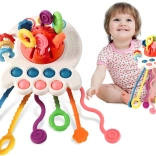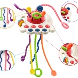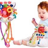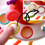 Táto farebná senzorická hračka je ideálny nástroj pre rozvoj dieťaťa, podporujúci hmatové a sensorické schopnosti. Vyrobená z kvalitných materiálov, priťahuje pozornosť vďaka striedmym farbám a zvukovým efektom.