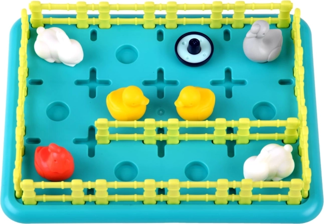 Plastová herná doska s jasne farebnými zvieratkami a plotmi ponúka vizuálne pútavý zážitok, ktorý stimuluje predstavivosť a kreativitu.