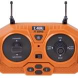 Ovládač umožňuje jazdu vpred/vzad, zatáčanie a zdvíhanie/spúšťanie radlice. Funkcia demo, vypínanie svetiel a zvukov, pohodlný ergonomický úchop.