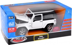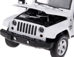 Jeep Wrangler 1:32 je krásny model s dôrazom na detail, ktorý poskytuje realistické zvukové a svetelné efekty. Vozidlo má otváracie dvere, kapotu a je vybavené systémom „pull back“, ktorý umožňuje jeho pohyb po hladkej ploche. Pri otvorení dverí sa spustí alarm s blikajúcimi svetlami, čo zvyšuje zábavnosť hry. Znázornenie motora a detailov interiéru dodáva hračke autentickosť.