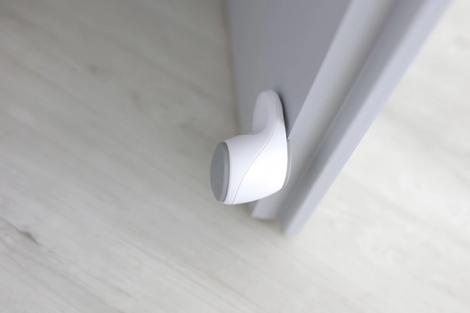 Zabezpečte svoj domov pre deti s bielou zarážkou dverí, ktorá zabraňuje privretiu.