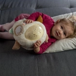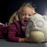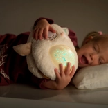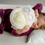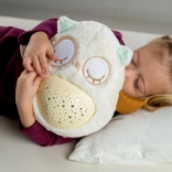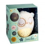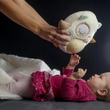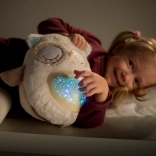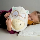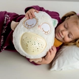 Tento mäkučký plyšový uspávačik kombinuje hrejivé objatie s chytrými funkciami na zaspávanie. Sovička premieta hviezdnu oblohu v 8 farbách, prehráva 8 uspávaniek a upokojujúce prenatálne zvuky, na ktoré sú najmenší zvyknutí z mamininho bruška. Po dohraní melódie ešte približne minútu jemne svieti a potom sa automaticky vypne.