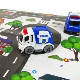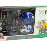 Súprava hračiek s motívom dopravy, ideálna pre deti, ktoré sa učia základné pravidlá cestnej premávky. Obsahuje policajné a sanitné vozidlo, ktoré sú ľahko uchopiteľné malými detskými rúčkami.