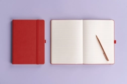 Zápisník v krásnej červenej farbe s linajkovaným formátom o rozmeroch 15 x 21 cm prináša dokonalú kombináciu klasiky a elegancie. Ideálny pre personalizáciu s firemnými logami vďaka jemnej štruktúre povrchu.