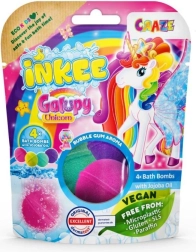 Premeňte kúpeľ na magický zážitok s bombami INKEE. Sada obsahuje 4 šumivé bomby v štyroch farbách – ružová, fialová, tyrkysová a žltá – s hravou vôňou žuvačky a ošetrujúcim jojobovým olejom. Sú dermatologicky šetrné, vegánske, bez mikroplastov a nefarbia pokožku, vlasy ani vaňu.