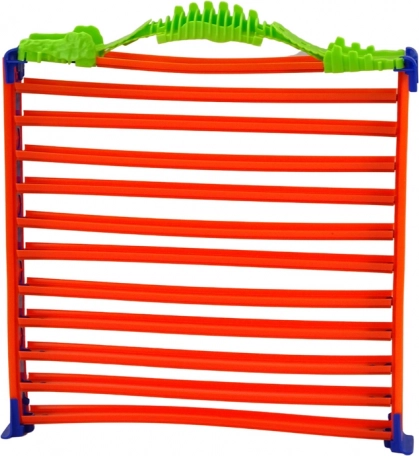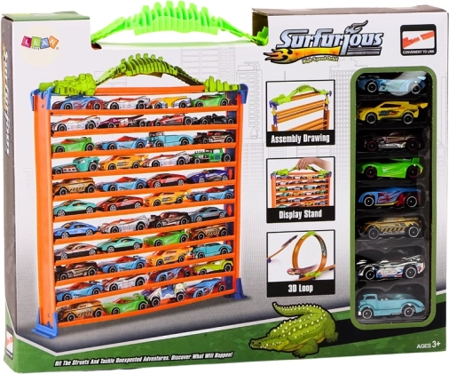 Univerzálny set pre malých fanúšikov áut: z jedného zostavenia vytvoríte závodnú dráhu so slučkou 360° aj viacúrovňové garážové parkovisko. Ľahké skladanie, stabilné madlo na prenášanie a 8 rôznych autíčok pre okamžitú zábavu. Farebné prevedenie v oranžovej, zelenej a modrej priťahuje pozornosť a podporuje kreatívne hranie.